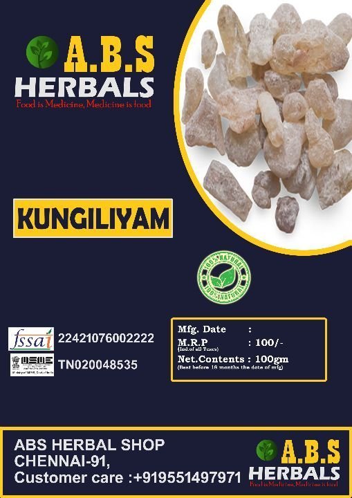 Kungiliyam is an aromatic resin used in cosmetics, perfumes & Poojas. The tears have a pleasant, sweet and woody odor that smells slightly of camphor. its is primarily used for its pleasant fragrance. When burned, it releases a sweet and calming aroma that is often used in religious ceremonies